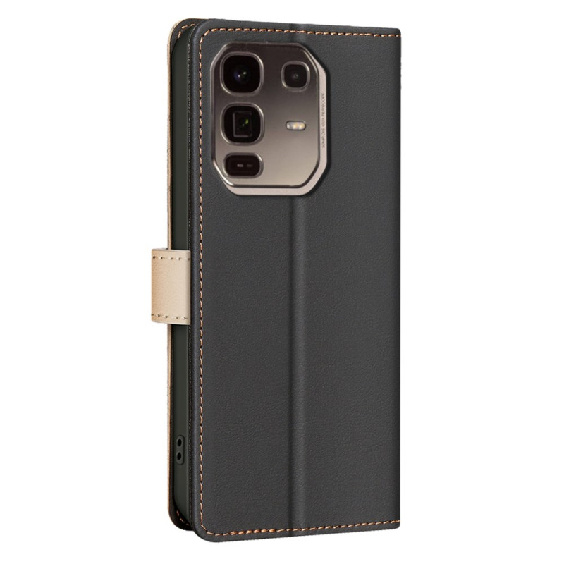 Elegante Brieftasche mit integriertem RFID-Schutz für Ihr Infinix Note 50 Pro Plus 5G. Anspruchsvolles zweifarbiges Design, 3 Kartenfächer und 1 Bargeldfach. Integrierte Halterung für freihändiges Betrachten und umfassenden Schutz.