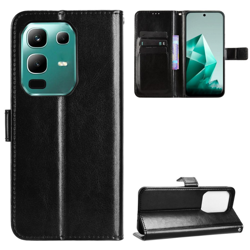 Elegante Brieftasche aus strukturiertem PU-Leder für Infinix Note 50X 5G. Verfügt über 3 Kartenfächer, ein Geldscheinfach, eine Freisprechfunktion und einen sicheren Magnetverschluss. Wird mit einer praktischen Handschlaufe für den einfachen Transport geliefert.