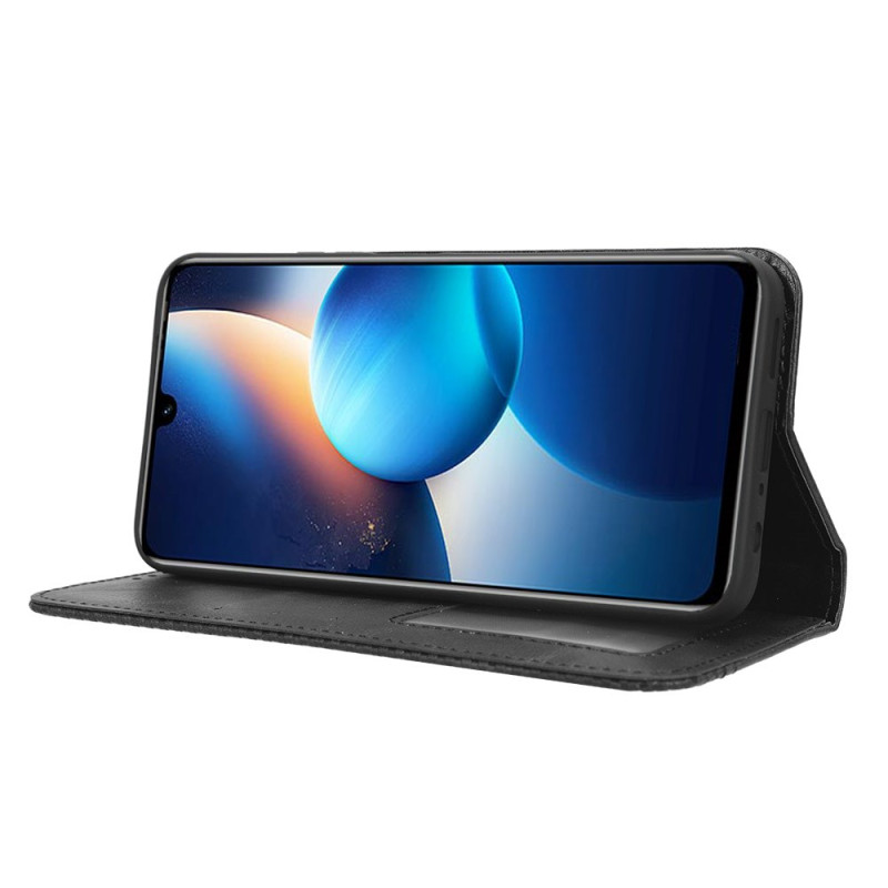 Retro-Wallet-Hülle für Infinix Zero 20 4G X6821 bietet umfassenden Schutz. Ausgestattet mit mehreren Kartenfächern, einem automatischen Magnetverschluss und einem verstellbaren Standfuß für optimales freihändiges Betrachten.