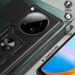 Schützen Sie Ihr Infinix Zero 40 5G mit dieser innovativen Hülle mit verschiebbarem Kameraschutz, integrierter drehbarer Halterung und verstärktem Schutz in Militärqualität. Kompatibel mit magnetischen Halterungen für Autos.