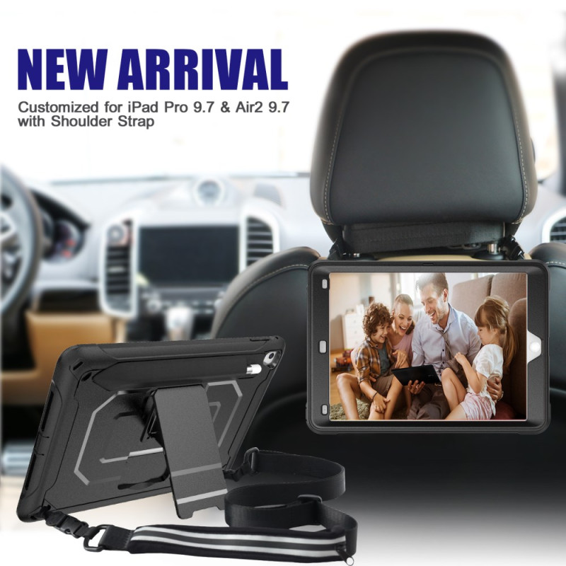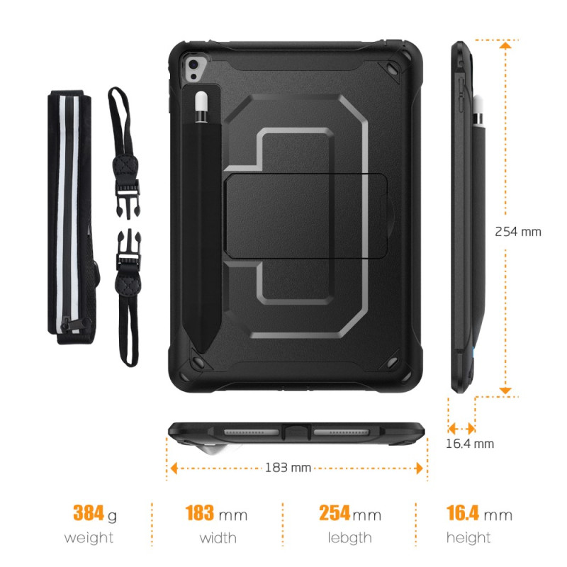 Protégez votre iPad avec style grâce à cette coque robuste à double couche. Son design blindé offre une protection optimale contre les chocs et les chutes. Dotée d'un support pliable réglable, d'un porte-stylet intégré et d'une bandoulière pratique, elle allie parfaitement sécurité et fonctionnalité pour un usage quotidien.