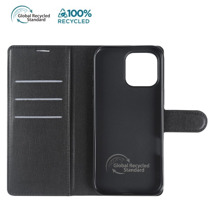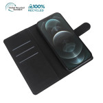 Entdecken Sie unsere umweltfreundliche Hülle für das iPhone 12 Pro Max. Sie wird aus recycelten Materialien hergestellt, bietet einen schlanken Schutz und integriert gleichzeitig eine praktische Brieftasche mit drei Kartenfächern.