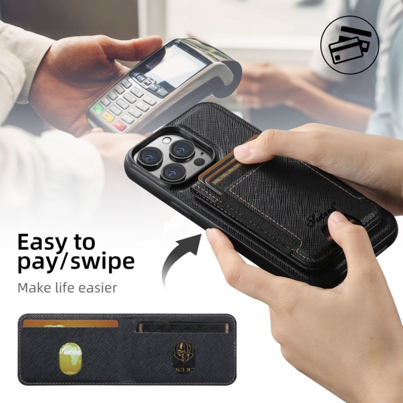 Entdecken Sie die SUTENI H17 Hülle für iPhone 12 / 12 Pro, die Stil und Funktionalität vereint. Hergestellt aus hochwertigem PU-Leder und weichem TPU, bietet sie dauerhaften Schutz mit einem eleganten, strukturierten Design. Ihr abnehmbarer, magnetischer Kartenhalter bietet Platz für 3-4 Karten und dient als Ständer für die freihändige Nutzung. Kompatibel mit MagSafe Wireless Charging und magnetischen Autohalterungen.