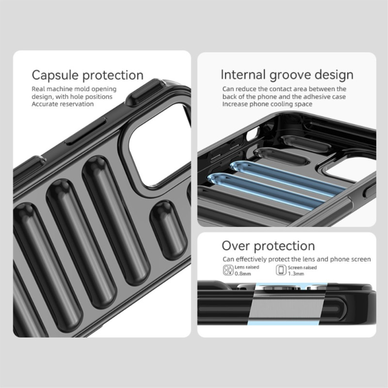 Entdecken Sie unsere Capsule Series-Hülle für das iPhone 12, die für optimalen Schutz konzipiert ist. Hergestellt aus hochwertigem TPU, bietet sie Flexibilität und Haltbarkeit. Das einzigartige Design mit kapselförmigen Rippen verbessert die Griffigkeit und Sturzfestigkeit und sorgt für eine hervorragende Wärmeableitung.