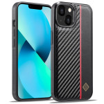 Schützen Sie Ihr iPhone 13 mini stilvoll mit dieser Premium-Hülle im eleganten Kohlefaserdesign. Die zweischichtige Konstruktion bietet eine überlegene Stoßdämpfung, während der markante rote Streifen einen modernen und raffinierten Touch verleiht.