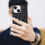Schützen Sie Ihr iPhone 13 Mini stilvoll mit dieser eleganten Hülle mit aufgenähtem Rautenmuster. Der integrierte Haltering ermöglicht eine praktische freihändige Nutzung zum Ansehen von Videos oder Lesen. Widerstandsfähig gegen Kratzer und alltägliche Stöße.