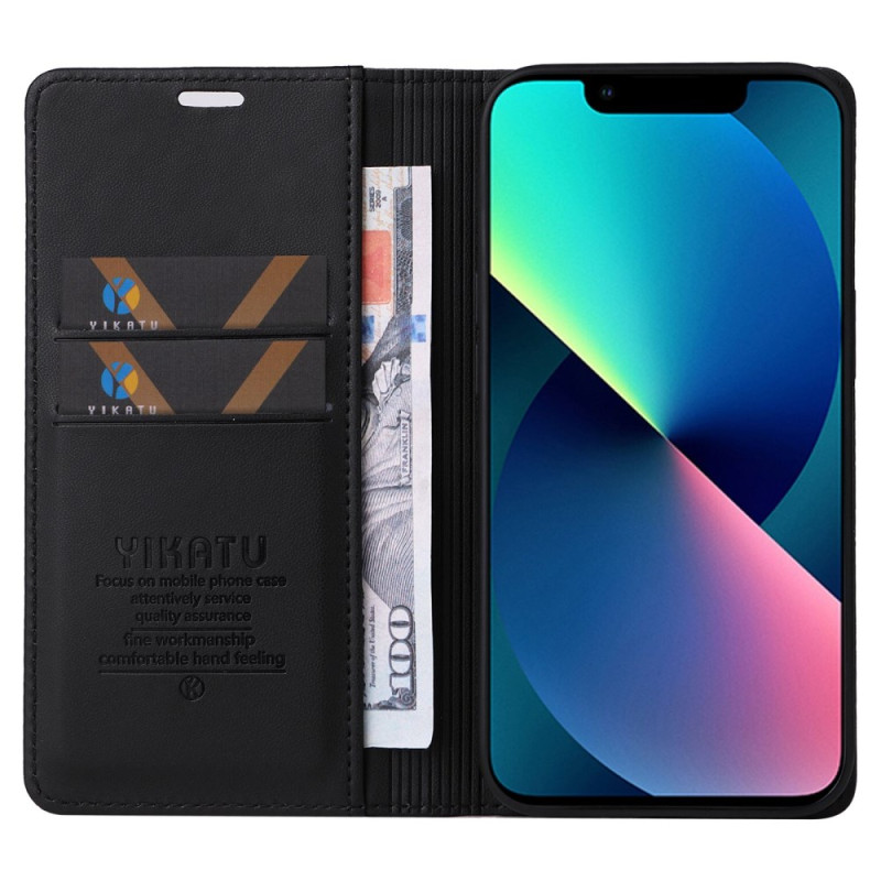 Protégez votre iPhone 13 Mini avec style grâce à cet étui portefeuille multifonction. Doté de deux emplacements pour cartes, d'une poche pour espèces et d'un support mains libres, il allie élégance et praticité au quotidien.