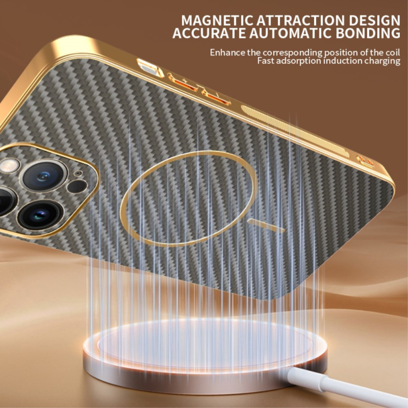Schützen Sie Ihr iPhone 13 Pro Max stilvoll mit dieser flexiblen und robusten TPU-Hülle. Die galvanisierte Premium-Oberfläche und die Kohlefasertextur bieten optimalen Schutz vor Stößen und sind gleichzeitig resistent gegen Fingerabdrücke.
