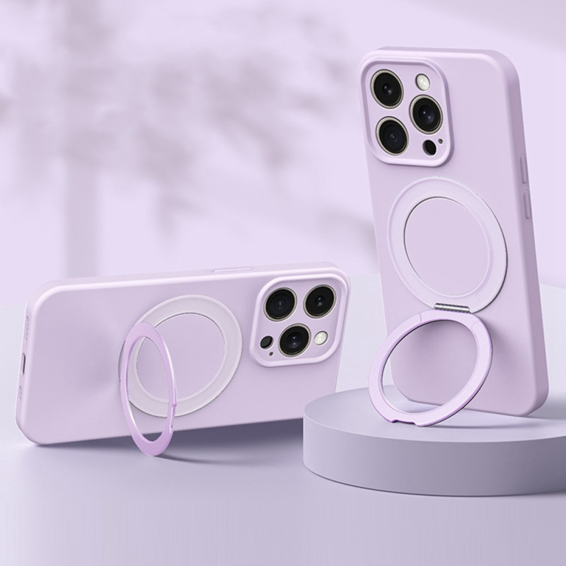 Magnetische Premium-Hülle für das iPhone 13 Pro Max aus Flüssigsilikon und PC. MagSafe-kompatibel mit integriertem Drehhalter mit mehreren Winkeln für freihändiges Betrachten. Verstärkter Schutz an den Ecken und kratzfeste Beschichtung für optimale Sicherheit im Alltag.