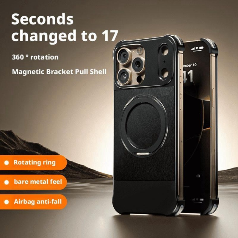 Elegante magnetische Schutzhülle für das iPhone 13 Pro Max mit integrierter Multifunktionshalterung. MagSafe-kompatibel und kabelloses Laden. Randloses Design mit verstärktem Schutz an den Ecken. Einfache Installation durch Schiebesystem.