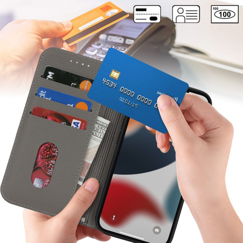 Entdecken Sie unsere elegante Klapptasche aus strukturiertem Leder für das iPhone 13 Pro Max und 12 Pro Max. Mit einem integrierten Ständer, drei Kartenfächern und einem sicheren Magnetverschluss vereint diese Tasche Stil und Funktionalität.