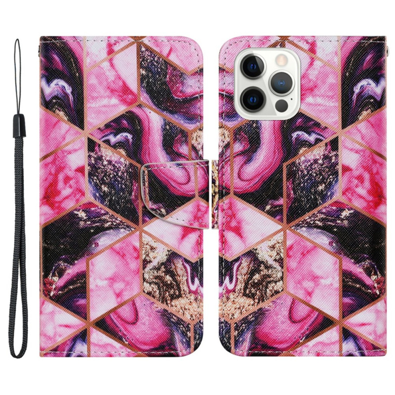 Schützen Sie Ihr iPhone 13 Pro Max stilvoll mit dieser eleganten Brieftasche mit rosafarbenem geometrischem Muster. Mit Kartenfächern, einer praktischen Handschlaufe und einem integrierten Ständer vereint diese Tasche Funktionalität und trendiges Design für Ihren Alltag.