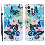 iPhone 13 Pro Max Hülle Blaue Schmetterlinge Aquarell