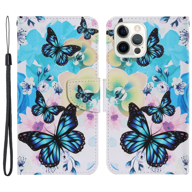 Schützen Sie Ihr iPhone 13 Pro Max stilvoll mit dieser raffinierten Brieftasche. Es ist mit einem wunderschönen blauen Schmetterlingsmuster verziert und vereint mit seinen zahlreichen Kartenfächern, der praktischen Handschlaufe und dem integrierten Ständer Stil und Funktionalität.