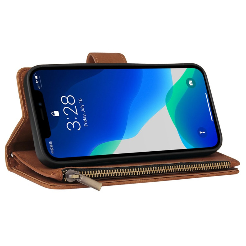 Multifunktionale Brieftasche für das iPhone 13 Pro Max, die Schutz und Zweckmäßigkeit vereint. Ausgestattet mit mehreren Kartenschlitzen, einem Bargeldfach und einem zusätzlichen Reißverschlussfach. Die Hülle aus weichem TPU und PU-Leder bietet optimalen Schutz vor Stößen und Kratzern.