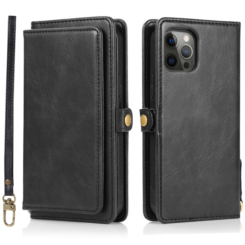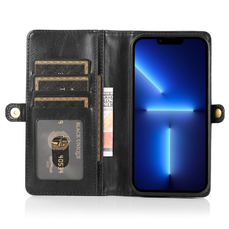 Découvrez notre étui antichoc détachable 2-en-1 pour iPhone 13 Pro. Design innovant avec portefeuille à rabat et coque arrière magnétique amovible. Rangez vos cartes et argent en toute sécurité tout en protégeant votre téléphone des chutes.