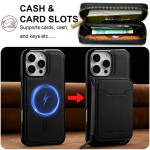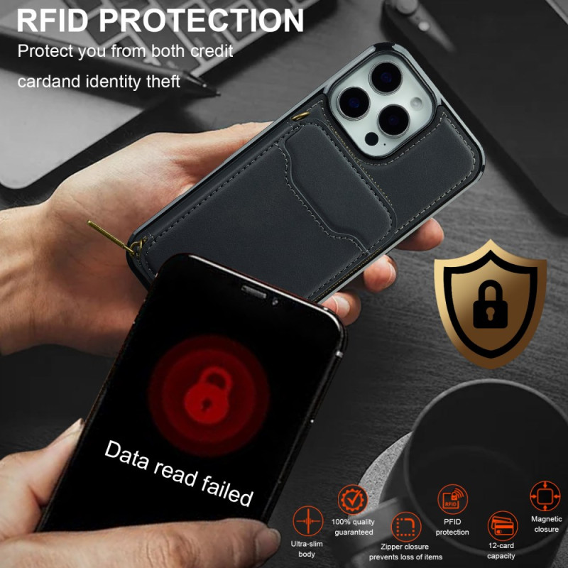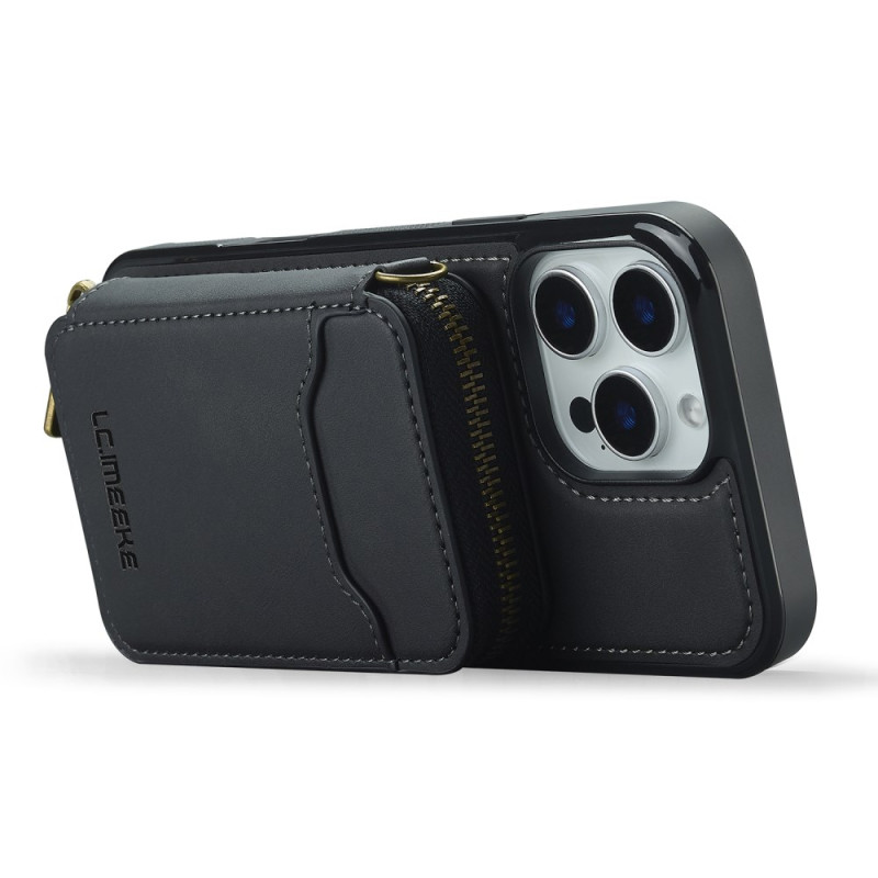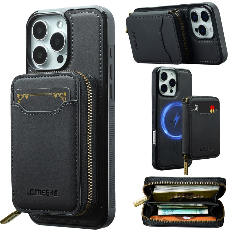 Innovatives 2-in-1-Etui mit abnehmbarer Brieftasche mit Reißverschluss und magnetischem Schutz. Bewahren Sie mehr als 10 Karten, Bargeld und Schlüssel sicher auf. Integrierter RFID-Schutz gegen Betrug. MagSafe-kompatibel für vielseitigen Einsatz.
