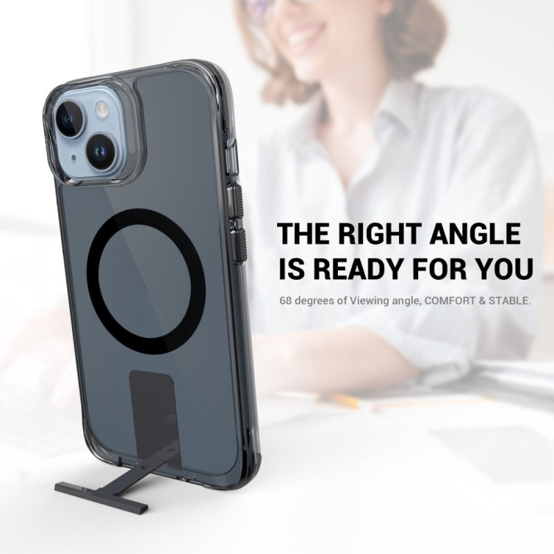 Entdecken Sie unsere transparente, MagSafe-kompatible Hülle für das iPhone 15 Plus / 14 Plus. Die aus TPU und PC hergestellte Hülle bietet Fall- und Stoßschutz und bewahrt gleichzeitig die Ästhetik Ihres Telefons. Seine integrierte Halterung aus Aluminiumlegierung ermöglicht eine freihändige Betrachtung in beiden Ausrichtungen. Die erhöhten Kanten schützen den Bildschirm und die Kameralinse.