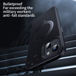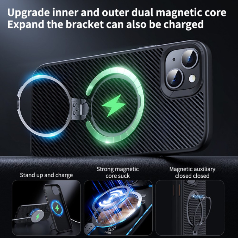Entdecken Sie unsere robuste Schutzhülle für das iPhone 14 Plus. Sie ist aus PC+TPU gefertigt und bietet optimalen Schutz vor Kratzern und Stößen. Die um 360° drehbare Halterung ermöglicht eine freihändige Nutzung, während die Textur aus Kohlefaser für Stil und Griffigkeit sorgt. Kompatibel mit MagSafe-Ladegeräten für effizientes kabelloses Laden.