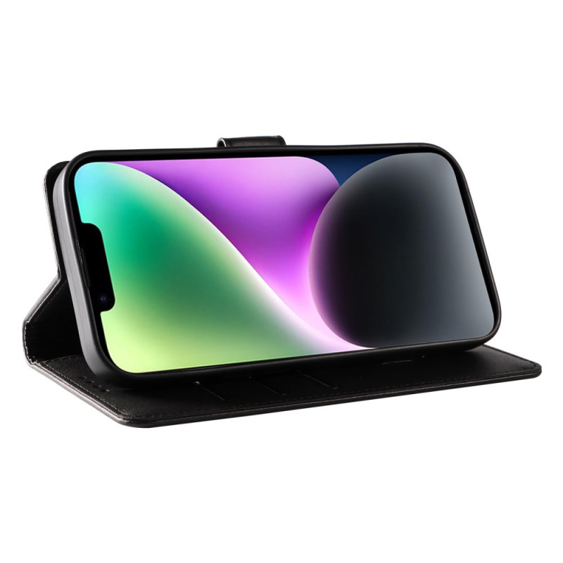 Découvrez notre coque élégante pour iPhone 14 Plus, alliant protection et fonctionnalité. Fabriquée en cuir PU de qualité avec un intérieur en TPU souple, elle offre une protection optimale. Son design de portefeuille comprend 3 emplacements pour cartes et une poche pour l'argent. Le support réglable permet une utilisation mains libres, tandis que la sangle magnétique double face se range discrètement à l'arrière.