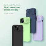 Die magnetische Ladehülle MagSafe von Nillkin ist perfekt für das iPhone 14 Plus und optimiert die Sicherheit durch den verschiebbaren Fotomodulschutz.