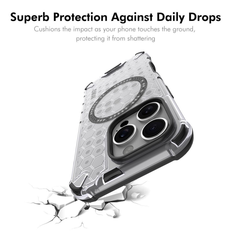 • Magnetische Hülle mit anspruchsvollem Wabendesign: Elegante lichtdurchlässige Struktur, die das Aussehen Ihres Telefons veredelt und gleichzeitig robusten Schutz bietet.