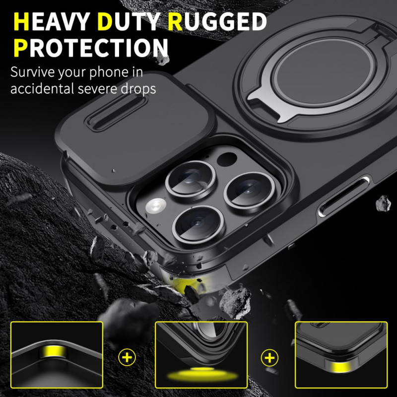 Schützen Sie Ihr iPhone 14 Pro Max stilvoll mit dieser innovativen magnetischen Schutzhülle. Mit einer doppelten, stoßfesten TPU+PC-Schicht, einer verschiebbaren Linsenabdeckung und einem um 360° drehbaren Stützring vereint sie Sicherheit und Zweckmäßigkeit.