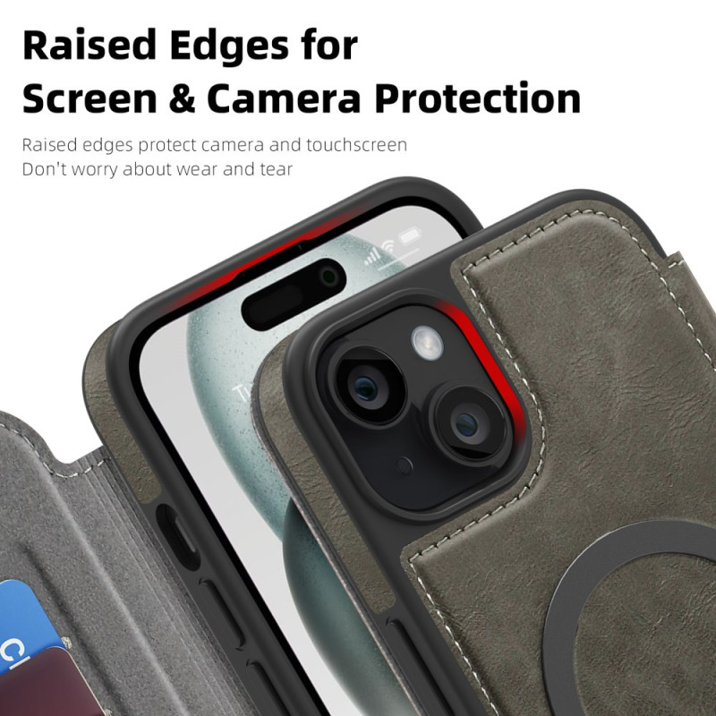 Entdecken Sie unsere Hülle für das iPhone 15 Plus, die Stil und Funktionalität vereint. Sie ist MagSafe-kompatibel und bietet RFID-Schutz, Kartenfächer und eine strapazierfähige Konstruktion aus Leder und TPU. Schützen Sie Ihr Gerät mit Eleganz und Zweckmäßigkeit.
