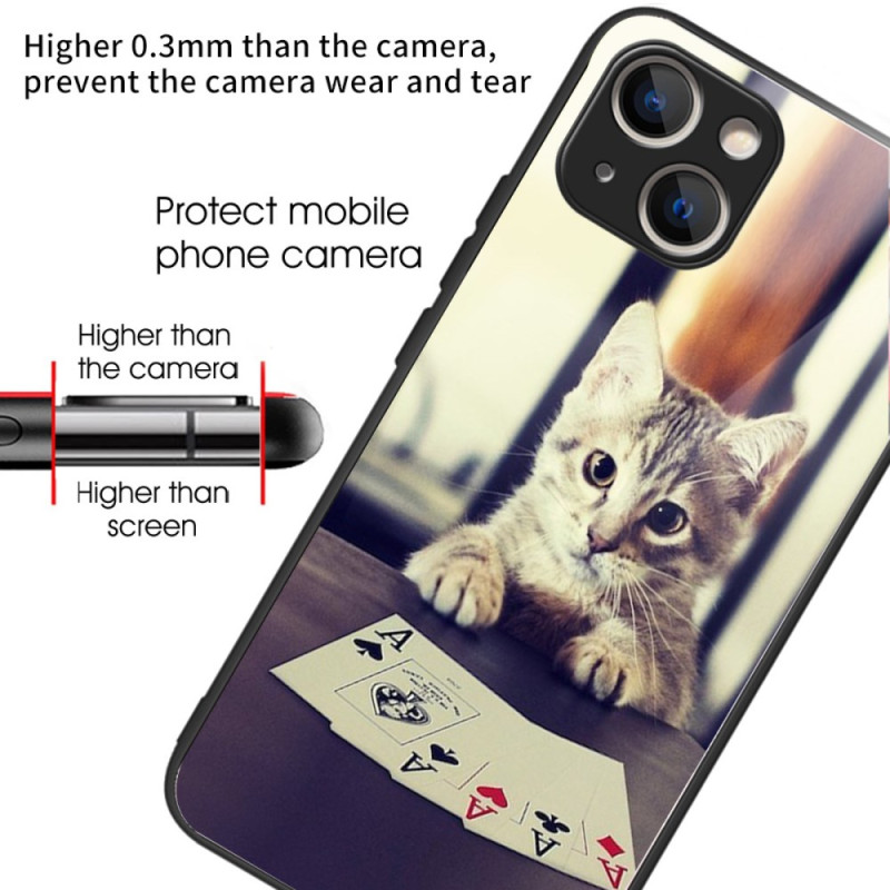 Entdecken Sie unsere innovative Schutzhülle für das iPhone 15 Plus. Die Kombination aus einem weichen TPU-Rand und einer Rückseite aus gehärtetem Glas bietet einen mehrschichtigen Schutz vor Stürzen und Kratzern. Das markante Katzenmotiv verleiht Ihrem Gerät einen Hauch von Stil. Mit einem um 0,3 mm erhöhten Rand zum Schutz der Kameralinse und einem verstärkten 360-Grad-Schutz vereint diese Hülle Schutz und Design.