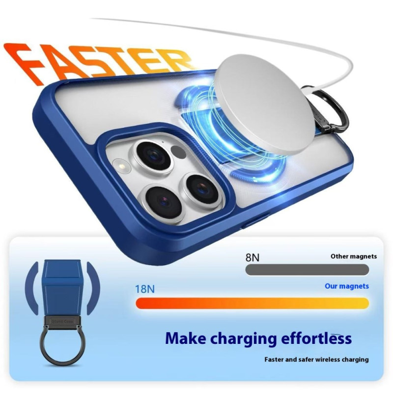 Entdecken Sie unsere innovative magnetische Hülle für das iPhone 15 Pro Max. Mit einem faltbaren Ständer und einem Haltering bietet sie einen Hybridschutz aus TPU und PC. Sie ist MagSafe-kompatibel und ermöglicht ein schnelles und stabiles kabelloses Aufladen. Ihr ergonomisches Design verbessert die Griffigkeit und ermöglicht eine freihändige Nutzung.