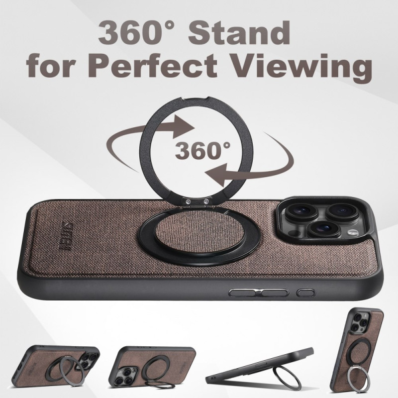 MagSafe Style Leder iPhone 15 Pro Max Cover mit 360° drehbarer Halterung