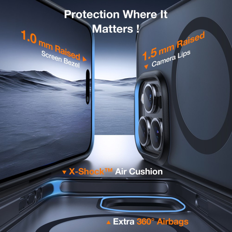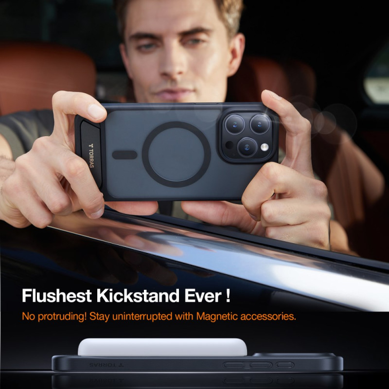 Robuste Schutzhülle für das iPhone 15 Pro Max mit integrierter Halterung. Hergestellt aus TPU und PC, bietet sie hervorragenden Schutz vor täglicher Abnutzung und sieht dabei noch elegant aus. Sie ist mit dem kabellosen MagSafe-Ladegerät kompatibel und verfügt über starke Magnete für eine optimale Haftung.