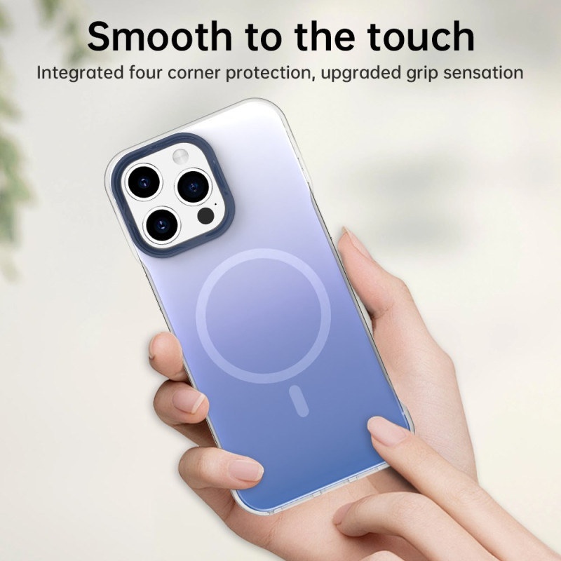 Entdecken Sie unsere elegante magnetische Hülle für das iPhone 15 Pro. Sie ist MagSafe-kompatibel und bietet dank ihrer Kombination aus langlebigen Materialien einen überlegenen Schutz. Das randlose Gradientendesign und die fortschrittliche IMD-Technologie sorgen für einen modernen, langlebigen Stil. Die Hülle ist leicht und präzise und garantiert einen einfachen Zugriff auf alle Funktionen Ihres Telefons.