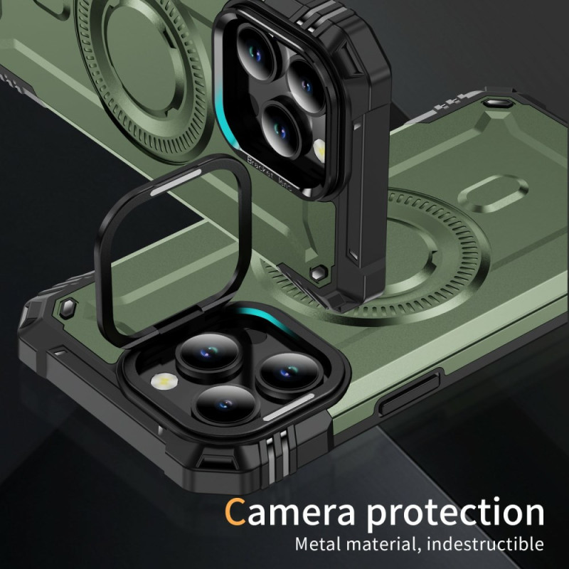 Entdecken Sie unsere robuste magnetische Hülle für das iPhone 15 Pro, die militärischen Schutz mit innovativen Funktionen verbindet. Mit einem verstellbaren Ständer, einem verstärkten Schutz für die Kamera und kompatibel mit MagSafe-Zubehör bietet diese Hülle ein optimales Nutzererlebnis und gleichzeitig maximalen Schutz für Ihr Gerät.
