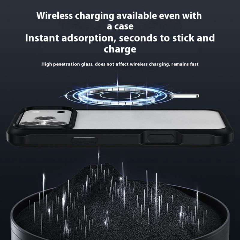 Diese doppelseitige Hülle aus 9H gehärtetem Glas, Silikon und TPU wurde entwickelt, um Eleganz und Robustheit zu vereinen. Sie bietet einen Rundumschutz für das iPhone 17 Pro Max. Das magnetische Design ermöglicht eine sofortige und wiederverwendbare Installation ohne Werkzeug oder lästige Anpassungen. Das hochtransparente Glas hebt die Originalfarbe des Telefons hervor, während die oleophobe und wasserabweisende Beschichtung alles sauber und streifenfrei hält. Sie ist mit dem kabellosen Aufladen kompatibel und bietet militärischen Schutz vor Stößen, während sie gleichzeitig schlank und bequem zu bedienen ist.