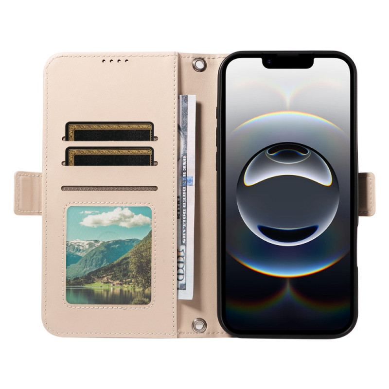 Entdecken Sie diese elegante Brieftasche mit Klappe für das iPhone 17E / 16E. Mit Strasssteinen und einem raffinierten Rautenmuster verziert, vereint es Stil und Praktikabilität. Ausgestattet mit 3 Kartenfächern, einem Bargeldfach und RFID-Sperrtechnologie.