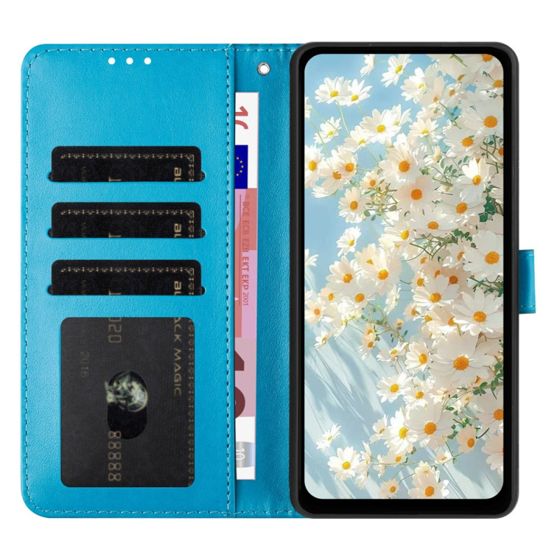Elegante Brieftasche mit geprägtem Gänseblümchen-Motiv für das iPhone 17E / 16E. Volle Funktionalität mit 3 Kartenfächern, integriertem Portemonnaie und Freisprecheinrichtung. Verstärkter Schutz vor Stürzen und Kratzern...