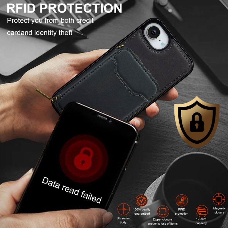 Abnehmbares 2-in-1-Etui mit magnetischer, MagSafe-kompatibler Brieftasche mit Reißverschluss. Sichere Aufbewahrung für mehr als 10 Karten, Bargeld und Schlüssel. Hybridschutz aus PU-Leder, PC und TPU mit integrierter Anti-RFID-Technologie für optimale Sicherheit.