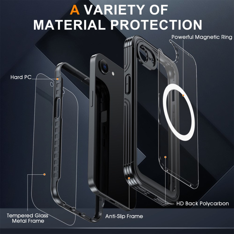 Entdecken Sie unsere Premium-Hülle für das iPhone 17E / 16E, die robusten Schutz mit elegantem Design verbindet. Sie ist aus hochwertigem PC und TPU gefertigt, bietet eine vollständige Abdeckung, bewahrt die Schönheit Ihres Telefons und enthält einen Displayschutz aus gehärtetem Glas. Die Hülle ist mit dem kabellosen MagSafe-Ladegerät kompatibel und vereint Funktionalität und Stil.