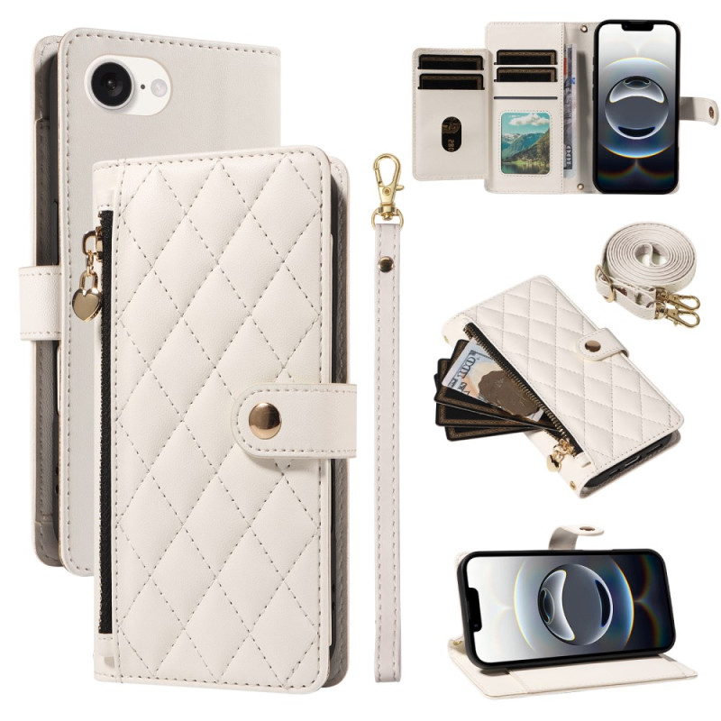 Elegantes Portemonnaie-Etui aus PU-Leder mit raffiniertem Rautenmuster. Multifunktional mit mehreren Kartenfächern, Münzfach mit Reißverschluss und integrierter Halterung für freihändiges Betrachten. Wird mit abnehmbaren Riemen geliefert.