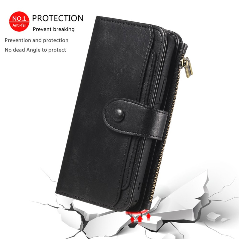 Abnehmbare 2-in-1-Multifunktionstasche mit magnetischem Design. Bietet einen verstellbaren Standfuß, mehrere Kartenfächer, ein sicheres Reißverschlussfach und umfassenden Schutz vor Stößen und Kratzern. Einfacher Zugriff auf alle Tasten und Anschlüsse.