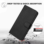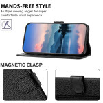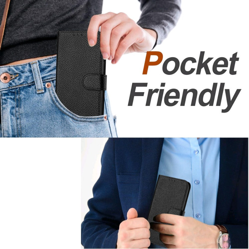 Elegante Brieftasche aus Leder mit Litschi-Textur für das iPhone 17E / 16E. Mit integriertem Ständer, 3 Kartenfächern, sicherem Magnetverschluss und abnehmbarer Handschlaufe. Verbesserter Schutz gegen Stöße und Stürze.