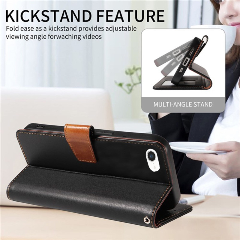 Entdecken Sie diese elegante Brieftasche für das iPhone 17E / 16E mit integriertem RFID-Schutz. Multifunktionales Design mit 3 Kartenfächern, 1 Geldscheinfach, integrierter Halterung und abnehmbarer Handschlaufe. Sicherer Magnetverschluss zum Schutz...
