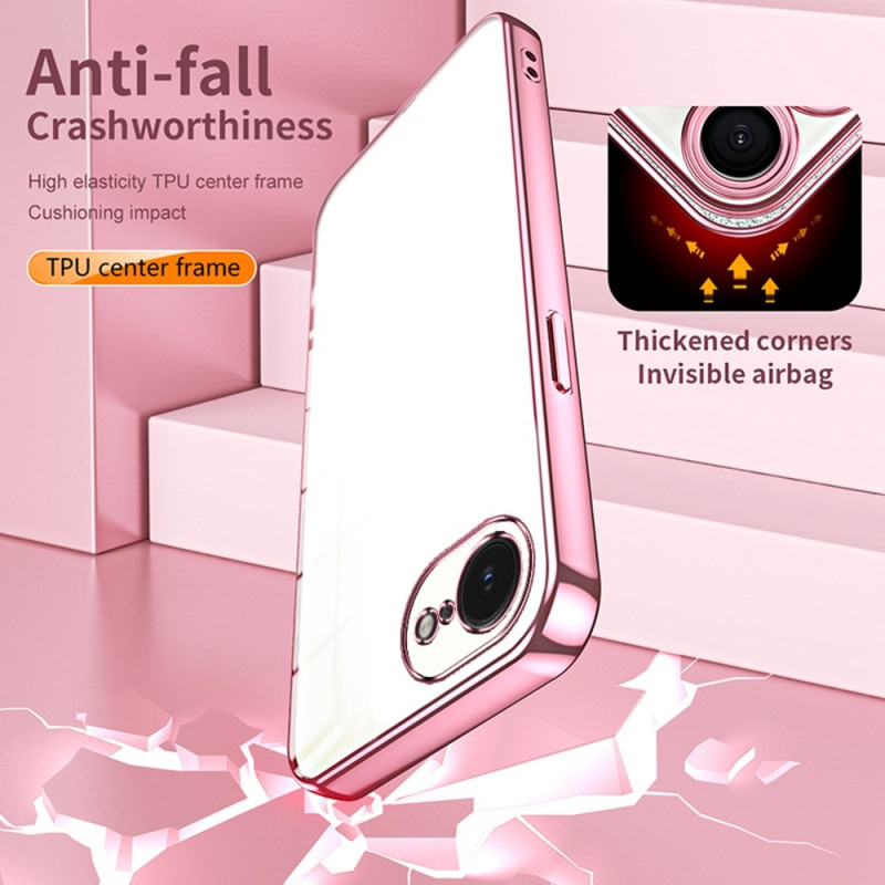 Schützen Sie Ihr iPhone 17e/16e elegant mit dieser Hülle aus weichem, 1,5 mm dickem TPU. Der elektrolytische Rahmen sorgt für einen edlen Look, während die erhöhten Kanten den Bildschirm und die Kamera vor Kratzern schützen. Ultradünnes Design mit...