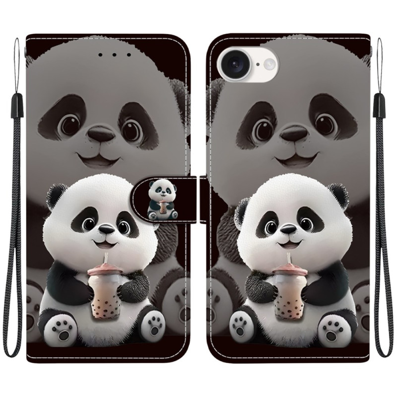 Elegante Wallet-Hülle mit Panda Milk Tea-Motiv für das iPhone 17E / 16E. Raffiniertes Design, das optimalen Schutz und Funktionalität kombiniert. Integrierter Klappständer für bequemes Betrachten, 2 Kartenfächer und Geldscheinfach. Sicherer Magnetverschluss und abnehmbare Handschlaufe im Lieferumfang enthalten.