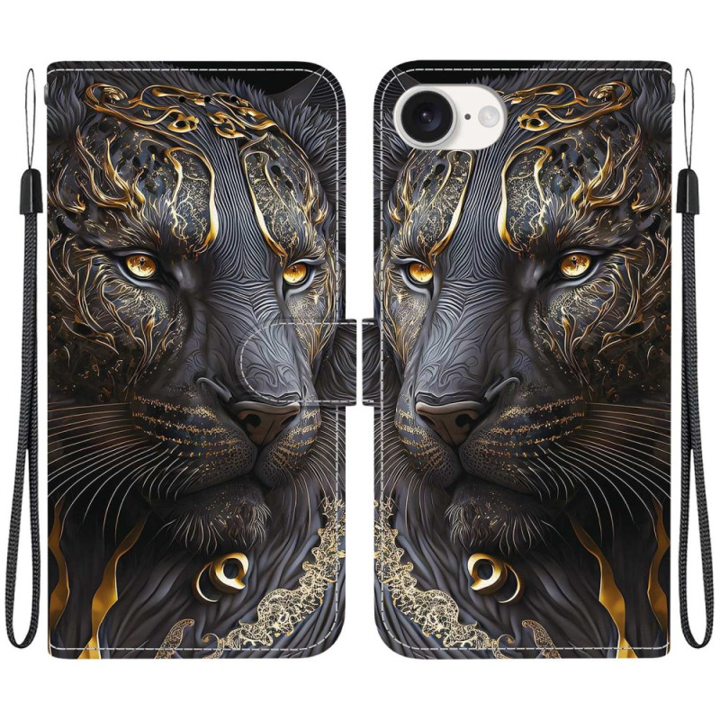 Schützen Sie Ihr iPhone 17E / 16E elegant mit dieser Brieftasche im raffinierten schwarz-goldenen Löwenmuster. Mit einem praktischen, faltbaren Ständer, zwei Kartenfächern und einer abnehmbaren Handschlaufe vereint es Stil und Funktionalität für den Alltag.