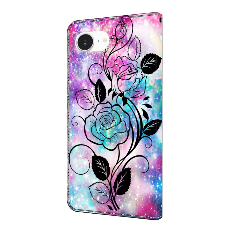 Elegantes Portemonnaie-Etui mit einem wunderschönen, mit der Feder gezeichneten Rosenmotiv. Klappendesign mit integriertem Klappständer, 2 Kartenfächern und Geldscheinfach. Umfassender Schutz mit sicherem Magnetverschluss.