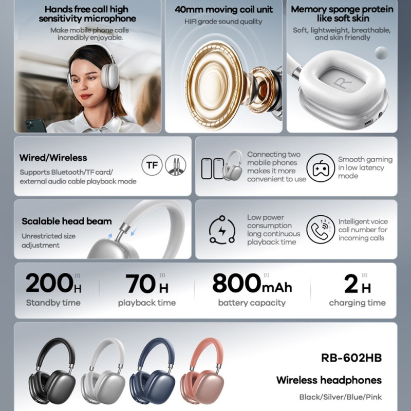 Tauchen Sie mit dem kabellosen Kopfhörer REMAX in der pinken Version in ein immersives Klangerlebnis ein. Er ist mit Bluetooth 5.4 ausgestattet und stellt eine schnelle und stabile Verbindung zu all Ihren Geräten her. Seine 40-mm-Einheit liefert einen satten HiFi-Sound, der sich perfekt für Musik, Anrufe oder Videos eignet. Genießen Sie eine beeindruckende Akkulaufzeit von bis zu 70 Stunden ununterbrochener Wiedergabe. Der Kopfhörer ist leicht, bequem und mit Ohrpolstern aus Memory-Schaum ausgestattet, sodass Sie ihn den ganzen Tag lang tragen können. Er ist vielseitig und unterstützt die Wiedergabe über Bluetooth, TF-Karte oder 3,5-mm-Audiokabel.