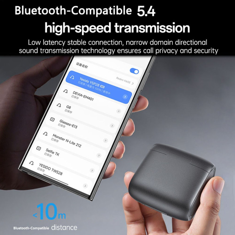 Der YESIDO YSP28 ist ein offener Kopfhörer, der sowohl für den professionellen als auch für den sportlichen Einsatz geeignet ist und bequemen Hörgenuss bietet, ohne im Ohr zu sitzen. Die Geräuschunterdrückung ENC mit einem einzigartigen Mikrofon sorgt für klarere Gespräche, indem sie die Umgebungsgeräusche reduziert. Der 12-mm-Titanmembran-Treiber sorgt für eine präzise HiFi-Wiedergabe. Die Ohrbügel aus Memory-Material passen sich natürlich an die Körperform des Benutzers an. Die Akkulaufzeit beträgt bis zu sechs Stunden und wird durch eine 450-mAh-Ladebox ergänzt, während die hochwertige Verarbeitung die Langlebigkeit und Ästhetik des Produkts unterstreicht.