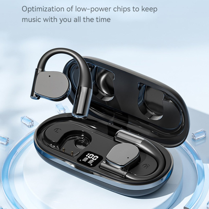 Diese Kopfhörer mit offener Leitung bieten eine stabile und energiesparende Bluetooth 5.4-Verbindung, die sich für den täglichen Gebrauch oder für Sport eignet. Dank des Open-Ear-Designs können Sie Ihre Umgebung aufmerksam verfolgen und gleichzeitig den klaren Klang der 16-mm-Kupferring-Treiber genießen. Das integrierte Digitaldisplay zeigt den Akkustand genau an, sodass Sie ihn ganz einfach verwalten können. Die 50-mAh-Ohrhörer und das 500-mAh-Gehäuse sorgen für eine längere Akkulaufzeit und eignen sich somit auch für eine längere Nutzung. Ihre ergonomische Struktur sorgt für einen sicheren und bequemen Halt.